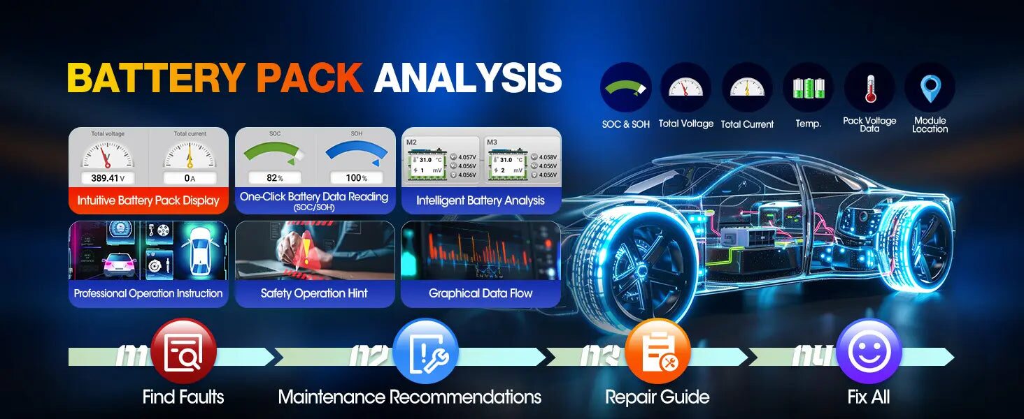 MaxiSYS Ultra EV je postavený tak, aby vedel riešiť to najdôležitejšie na elektromobile – vysokonapäťovú batériu a súvisiace systémy.